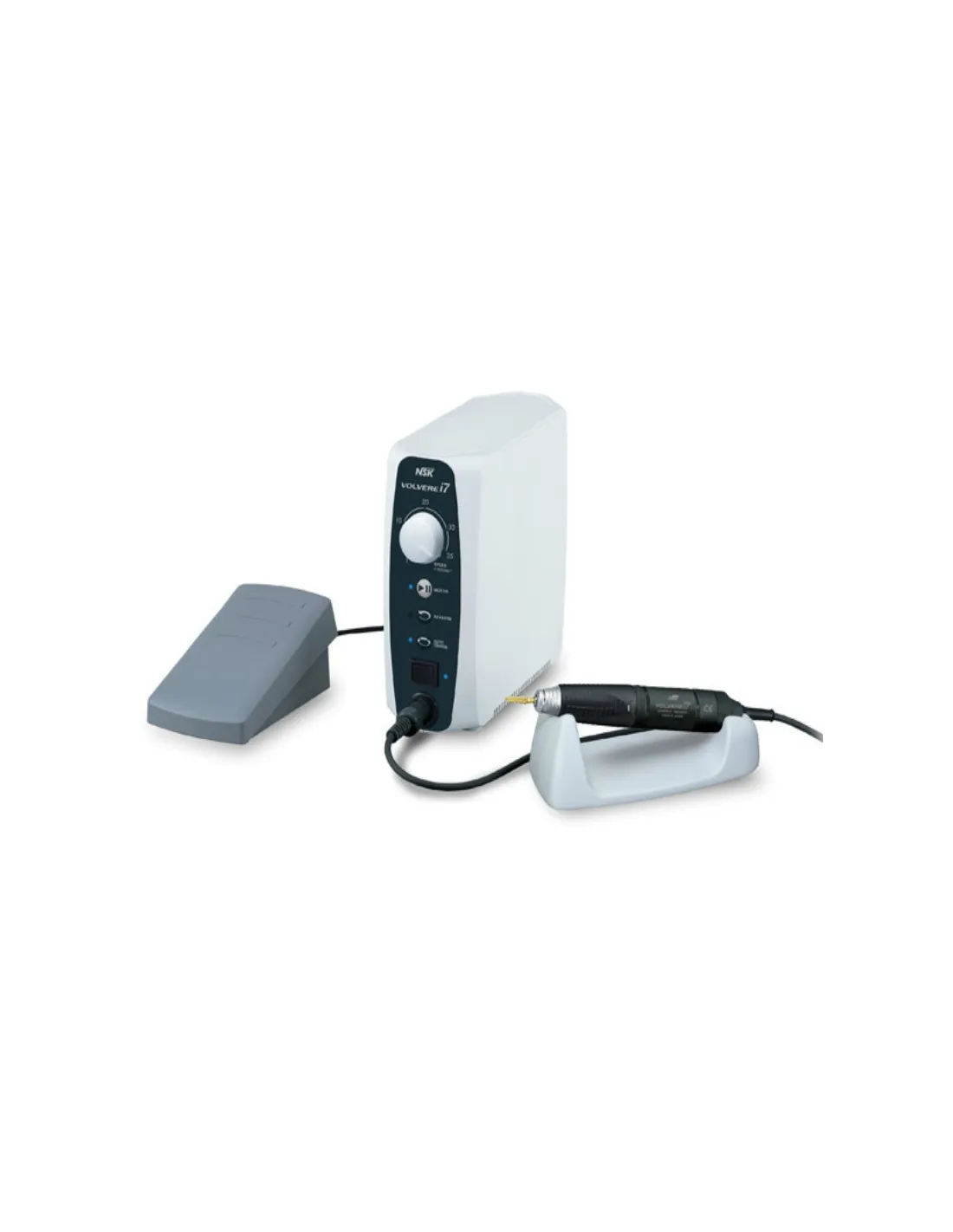 El sistema Volvere i7 RM de NSK incluye: unidad de control Volvere i7, micromotor, pedal de control y soporte para pieza de mano.