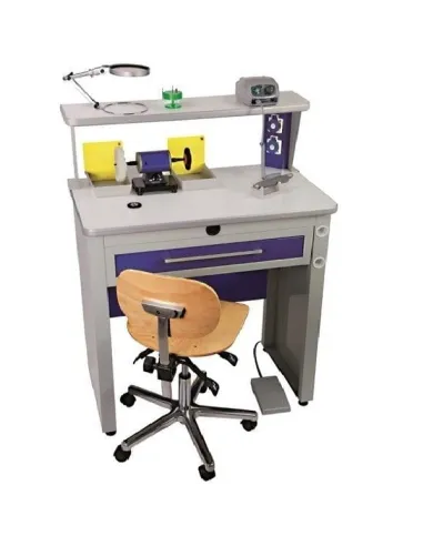 La mesa de repaso R-100301 K2 de Mestra, diseñada y fabricada en España está indicada para un puesto de trabajo en laboratorio dental y cuenta con: