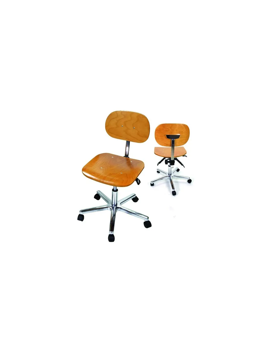 Silla para puesto de trabajo R-100300 con asiento y respaldo fabricados en madera con acabado barnizado mate de fácil limpieza.