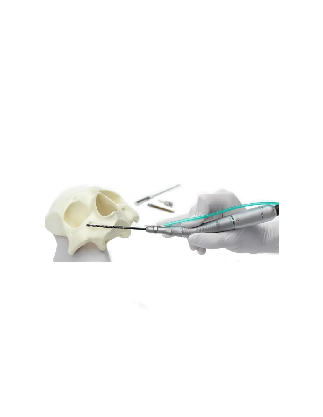 Diseñada especialmente para facilitar la labor del cirujano en la inserción de implantes cigomáticos. Gracias a su ángulo especial permite un acceso óptimo para procedimientos quirúrgicos difíciles en el área del hueso cigomático.