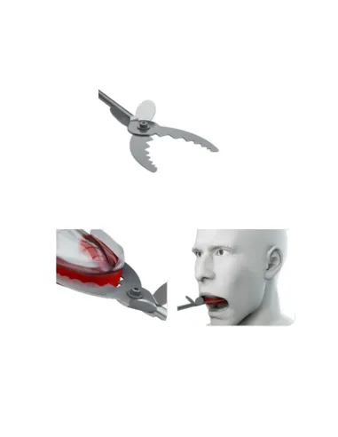 El tenedor para desdentado es un accesorio del arco facial de doble asta regulable, que facilita una mejor adaptación al reborde alveolar de desdentados totales (planos de cera), o para pacientes dentados con diferentes anchuras de arco dental.