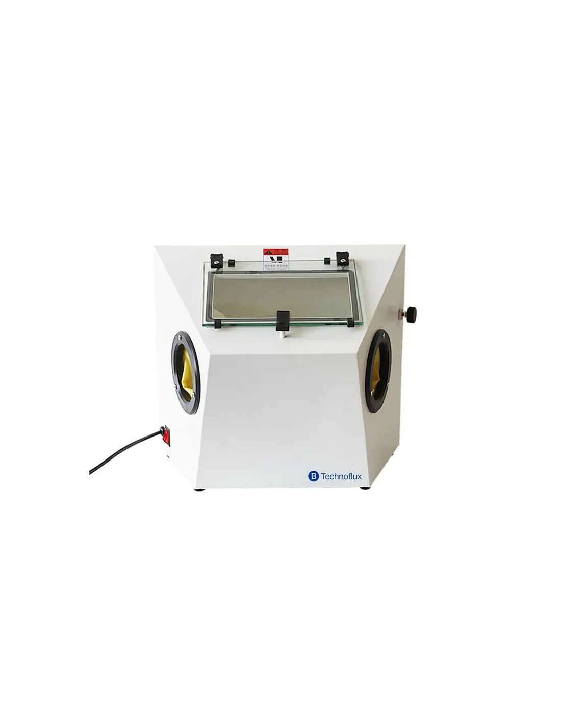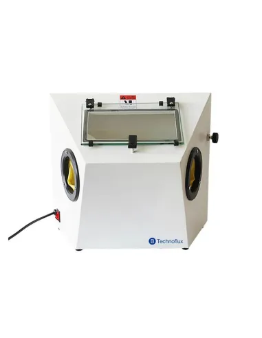 La arenadora MiniEco de Technoflux con depósito, presenta un circuito cerrado de abrasivo, que permite la reutilización contínua del material.