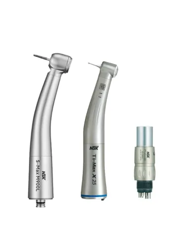 Tanto la turbina M900L S-Max como el contra-ángulo X25 gama Ti-Max serie X, de NSK son termodesinfectables y esterilizables en autoclavable hasta 135ºC.