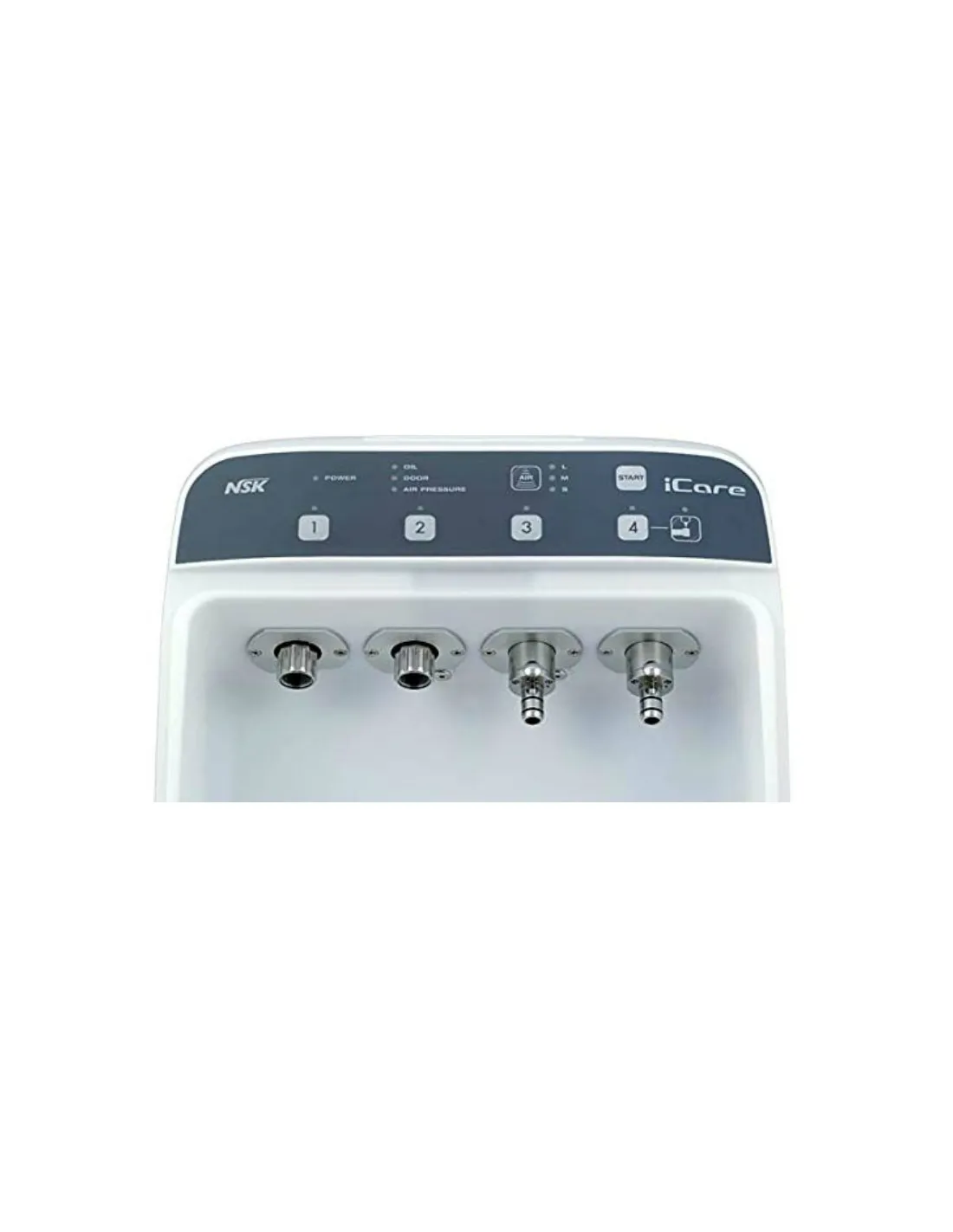 - iCare C2 de NSK disposito engrasador automático para el mantenimiento del instrumental rotatorio. Diseño compacto con deposito integrado de gran capacidad. Panel de control ergonómico de fácil funcionamiento, con un solo toque. Volumen de solución programable, según el tipo de pieza de mano sea de alta o de baja velocidad. Función de selección de purga con 3 modos y función de limpieza de portafresas. Con filtro para cabezal HP que impide las fugas. Tapa frontal extraible para una limpieza rápida y fácil del sistema. LED de alarma. Compatible con tanto con piezas de mano NSK como de otras marcas. Con 2 puertos estándar + dos puertos de rotación. Presión de aire : 0,5-0,6 MPa (5,0-6,0 kgf/cm2 ). Dimensiones (mm) : W280 x D240 x H350. * Solo se puede conectar al tipo Midwest de 4 vías.