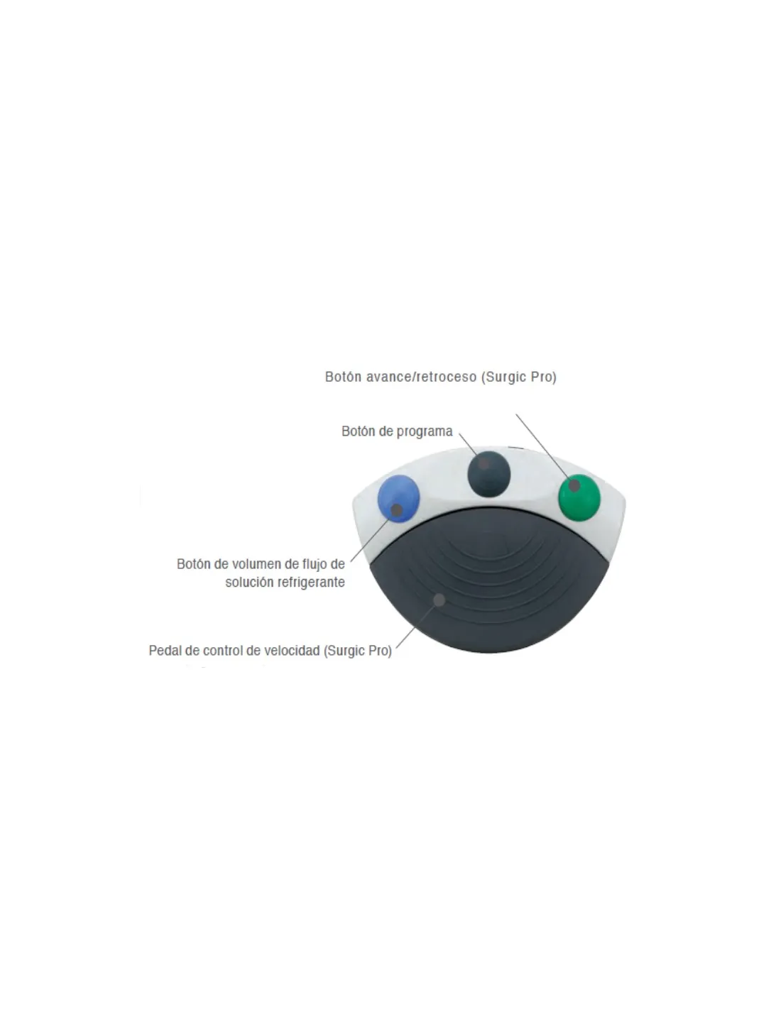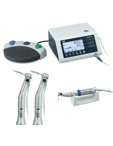 Surgic Pro de NSK, es un micromotor para cirugía oral e implantes, sin luz y sin almacenamiento de datos. Con unidad de control, compacta, posee una amplia pantalla LCD y botones de manejo intuitivo. Pedal de control que permite el manejo de múltiples funciones sin necesidad de tocar el panel de control.