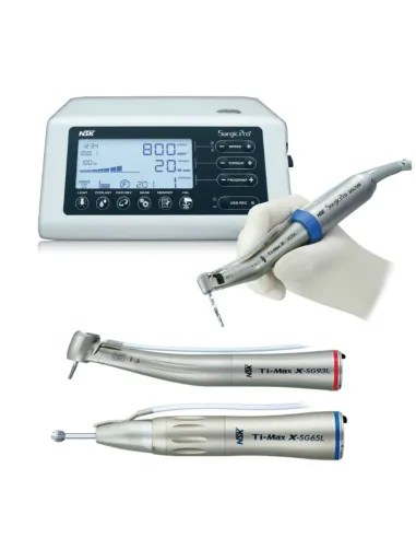 Surgic Pro LED de NSK, es un micromotor para cirugía oral e implantes, sin almacenamiento de datos. Su unidad de control posee una amplia pantalla LCD y botones de manejo intuitivo. El pedal de control permite el manejo de múltiples funciones sin necesidad de tocar el panel de control.