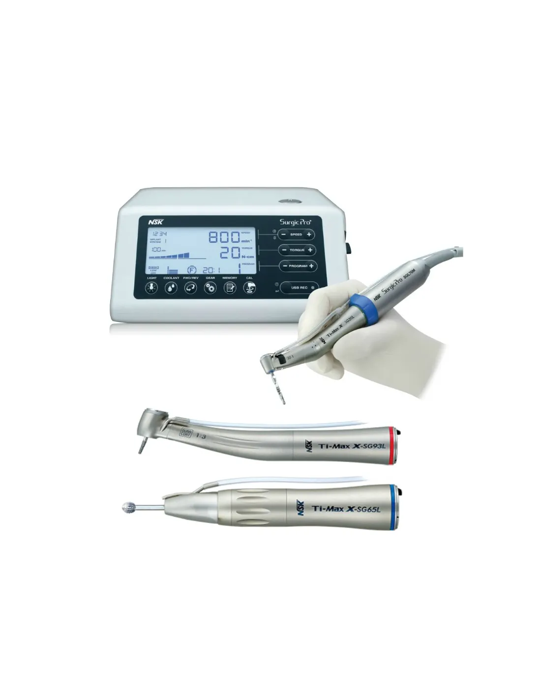 DESCRIPCIÓN DE PACK NSK 10 SURGIC PRO LED + CONTRA-ANGULO X-SG93L + PIEZA DE MANO RECTA SG65L