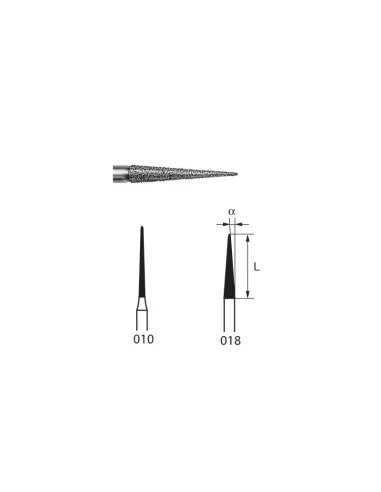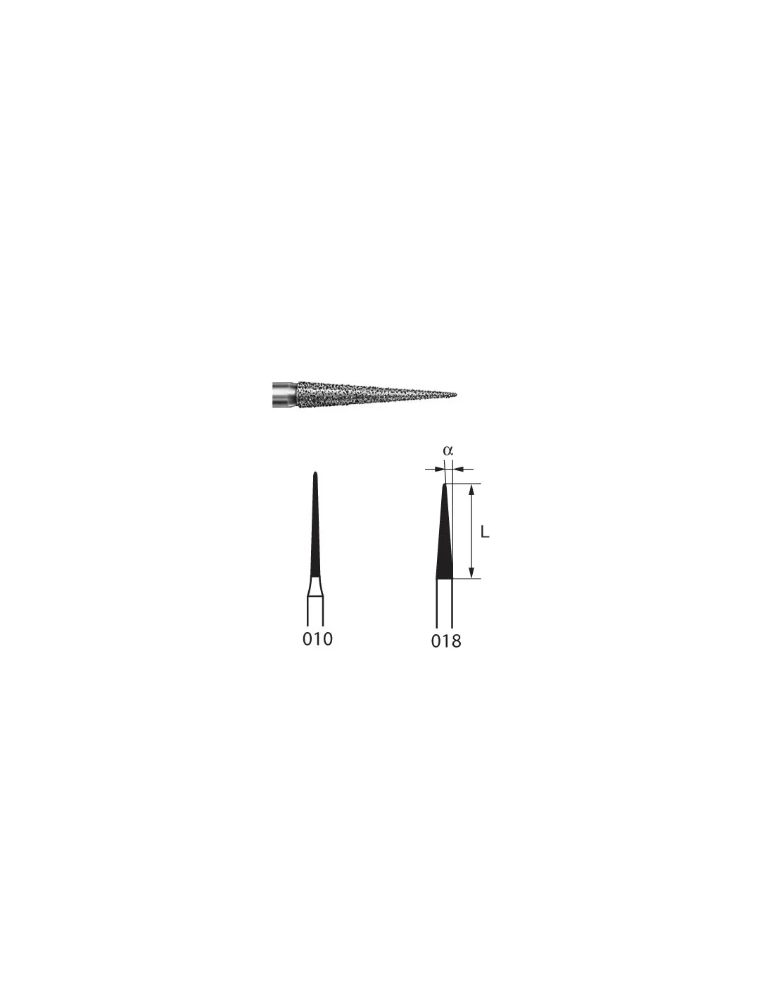 La fresa de diamante 859.314 de Komet es un instrumento cónico puntiagudo, para remoción de obturaciones y preparación de coronas.