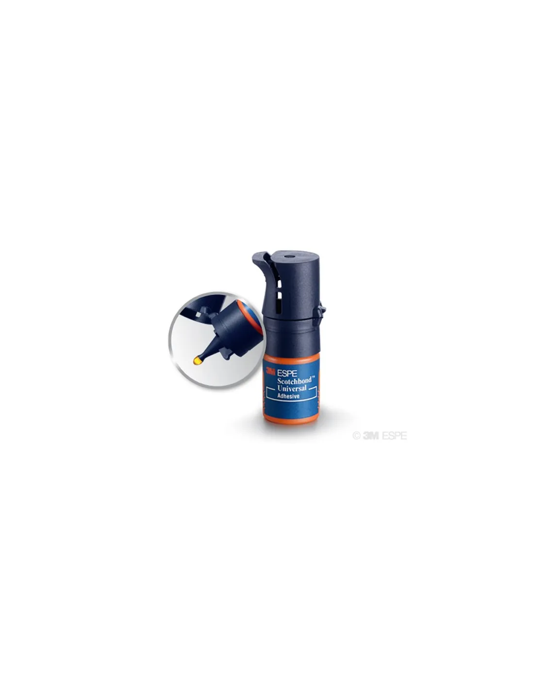 El adhesivo Scotchbond™ Universal de 3M, es un gel grabador de consistencia y color mejorados. Proporciona la máxima resistencia y velocidad, tiempo de aplicación de 35 segundos. Es versatilidad ya que puedes elegir la técnica más apropiada en cada uso, ya sea autograbante, grabado ácido total o grabado selectivo del esmalte.