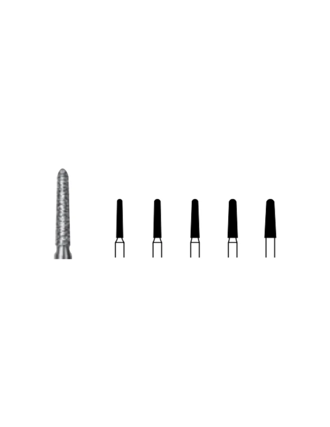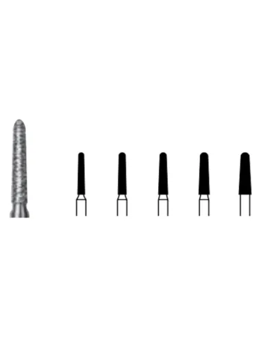El instrumento 6856 de Komet es una fresa diamante para turbina con forma cónica con bisel, redondo, indicada para la preparación de coronas.
