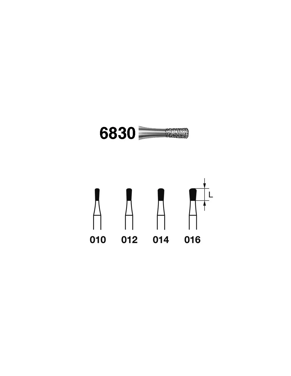 El instrumento 6830 de Komet es una fresa diamante para clínica con forma de pera, indicada para la preparación de cavidades.