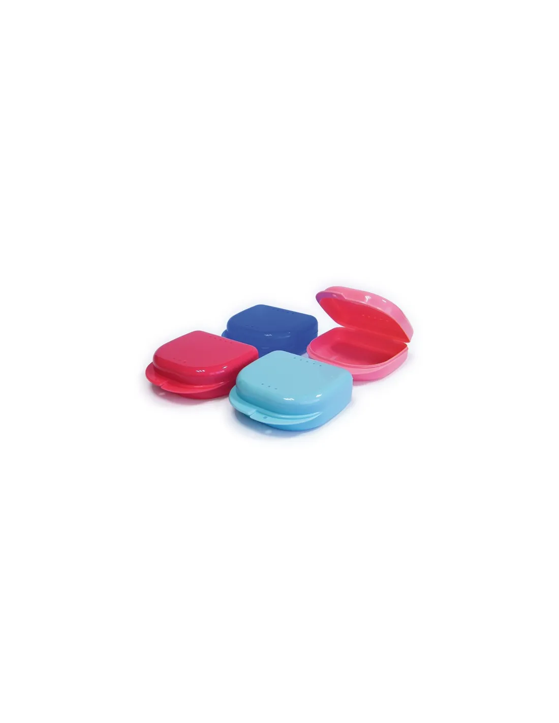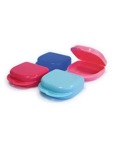 Cajas para guardar aparatos de ortodoncia, fabricadas en material de plástico.