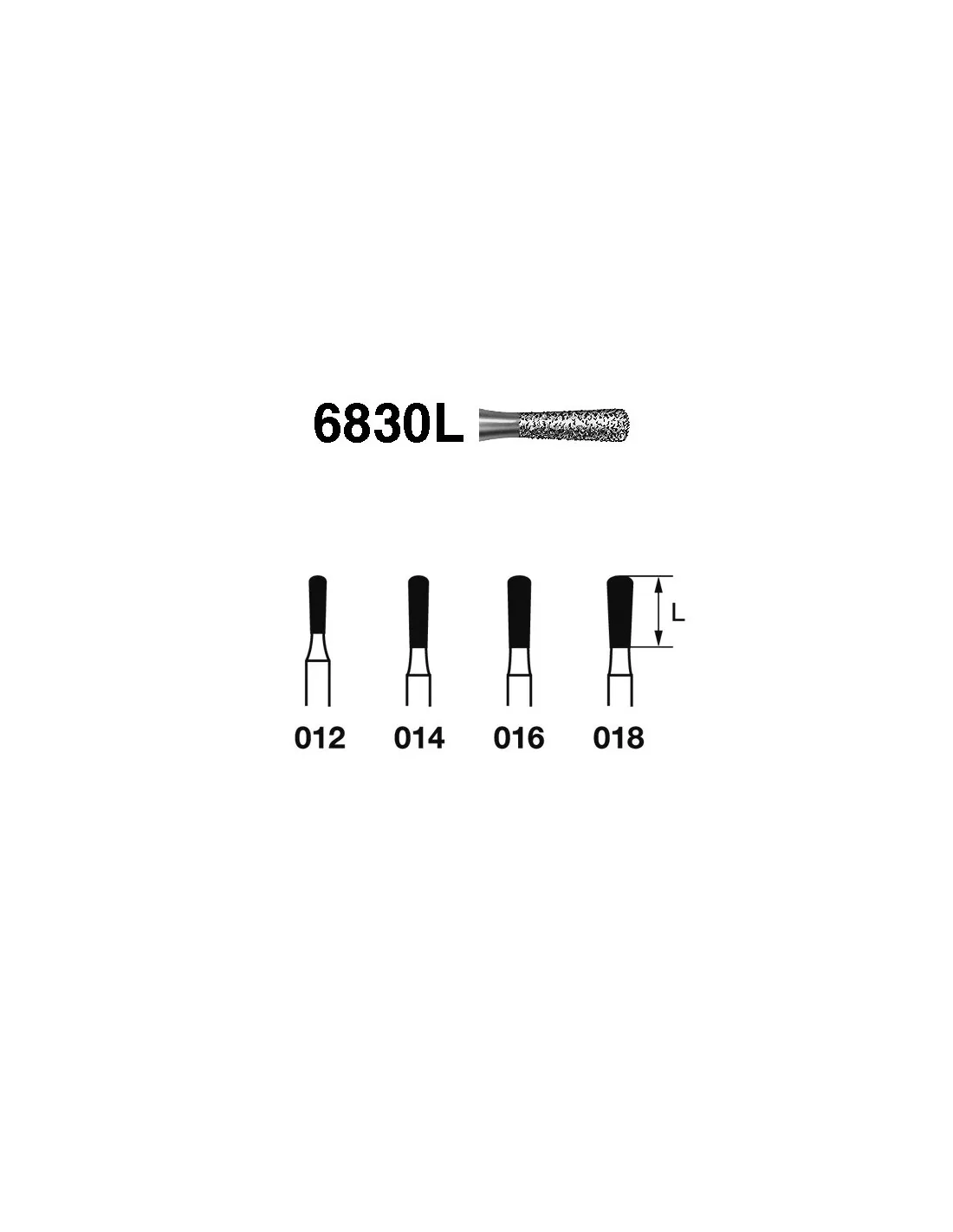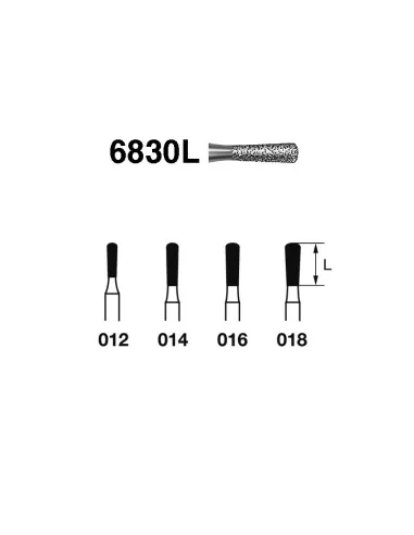 El instrumento de preparación 6830L de Komet es una fresa diamante para clínica con forma de pera, larga.