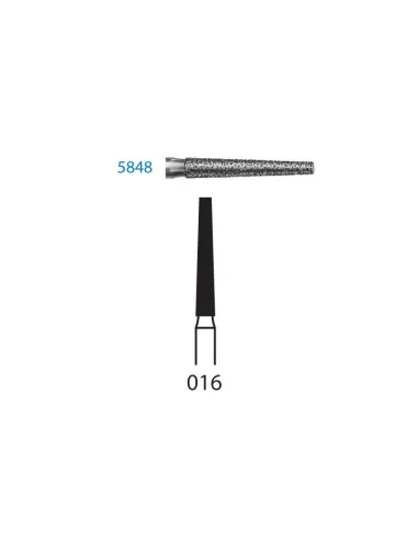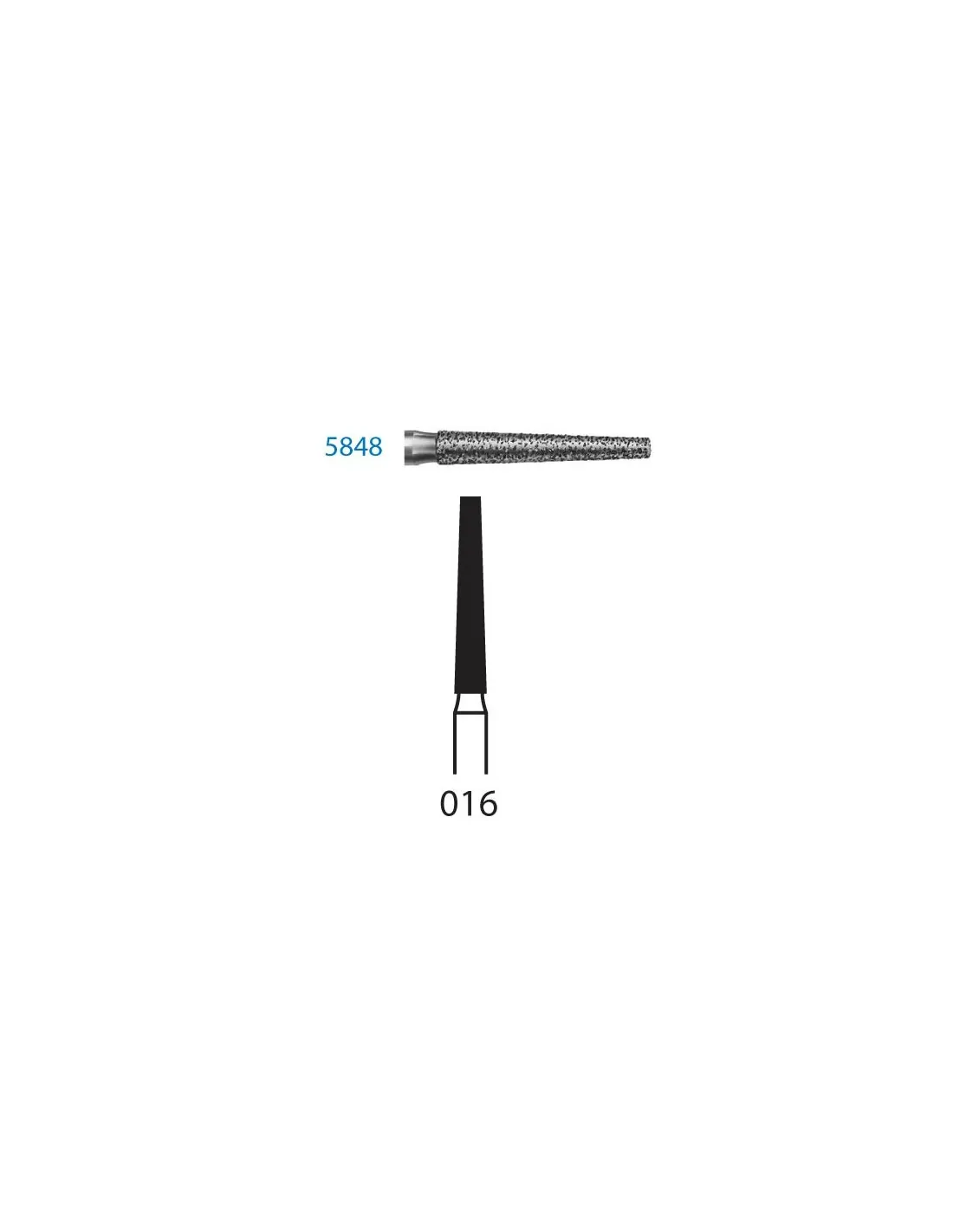 El instrumento 58848 de Komet es una fresa diamante con forma cónica, largo con hombro.