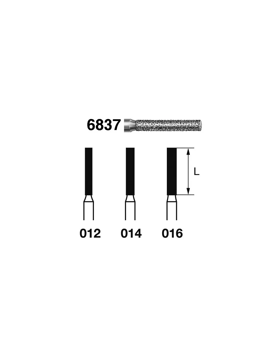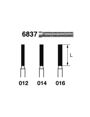 El instrumento dental Komet 6837 es una fresa diamante para clínica paralelo, con hombro.