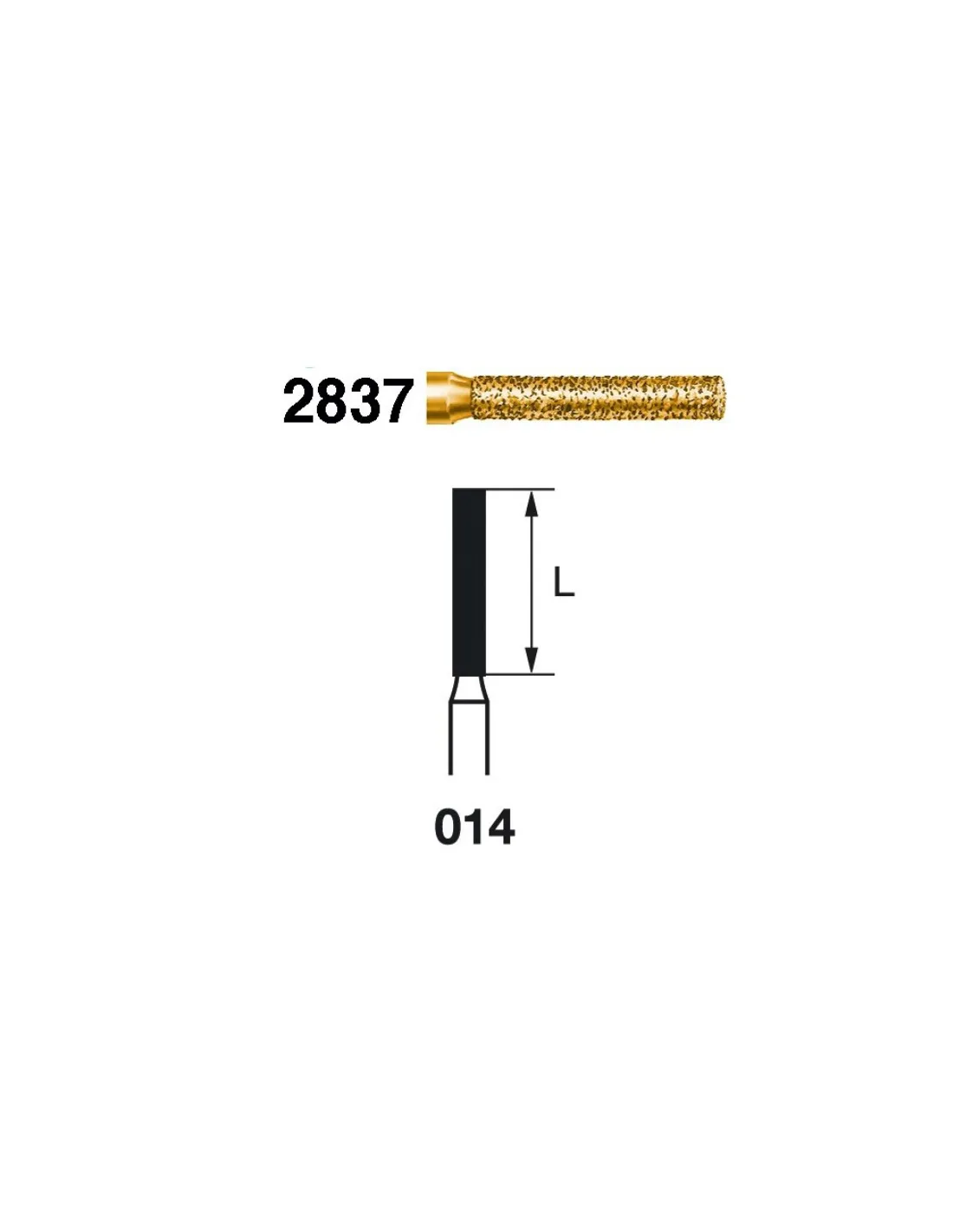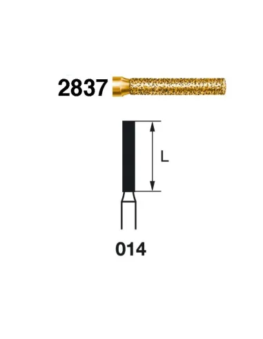 Instrumento dental Komet 2837 es una fresa diamante CCA serie 2000 para clínica con forma de cilindro. Paralelo, con hombro.