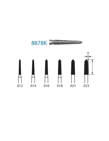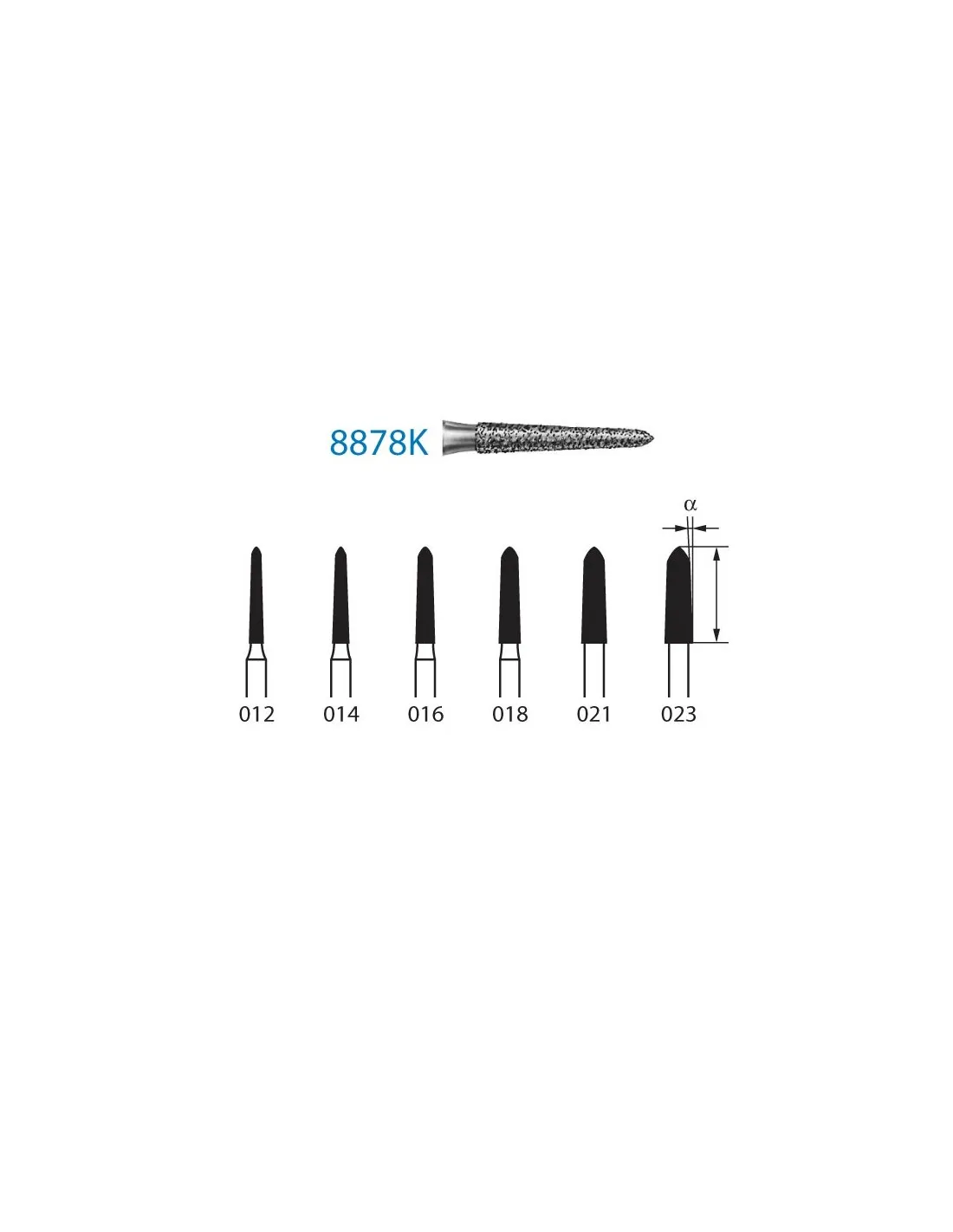 Fresa dental Komet 8878K es una fresa de diamante clínica cónica con bisel, torpedo.