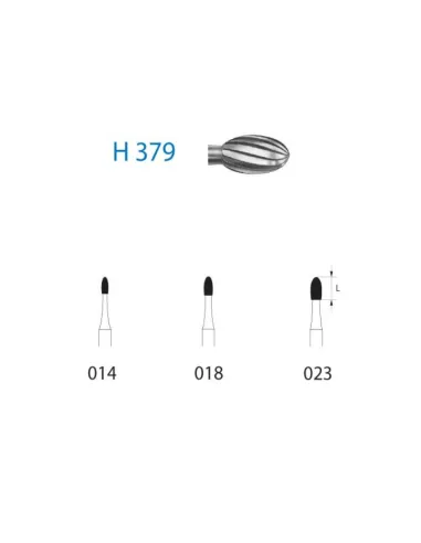 Es una fresa turbina con forma oval, de huevo o balón de rugby adaptado al instrumento 8379/OSD1 de diamante.