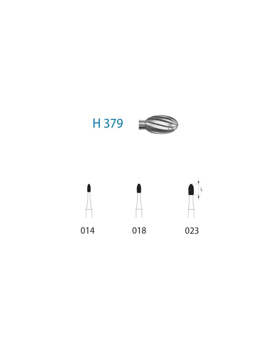Esta fresa para turbina (FG) poseen un vástago de 19mm (314) con diferentes longitudes en su parte activa, disponible en los siguientes tamaños:
