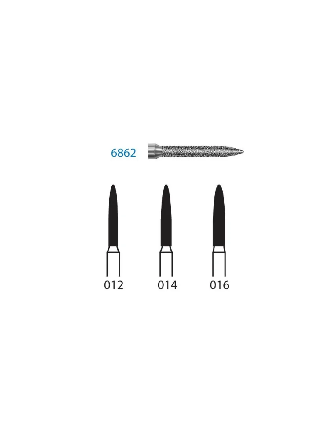 Fresa Komet 6862 es un instrumento diamante de preparación de coronas; tangencial.