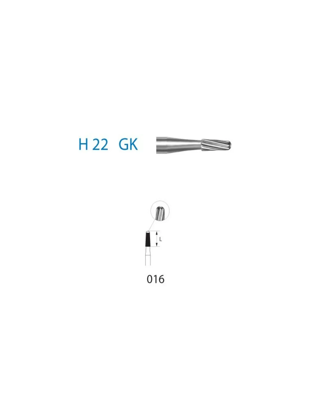 Fresa Komet H22GK es una fresa de carburo de tungsteno para turbina clínica, indicada para la eliminación rápida y segura de restos de adhesivos.