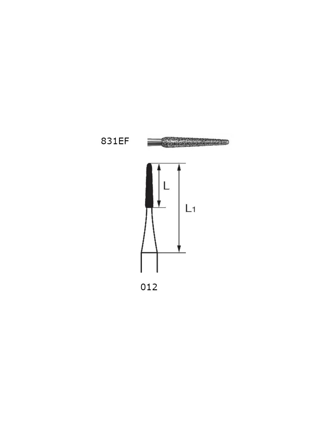 Instrumento dental Komet 831EF es una fresa diamante para contraángulo indicado para la preparación, planificación de raíces.