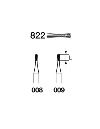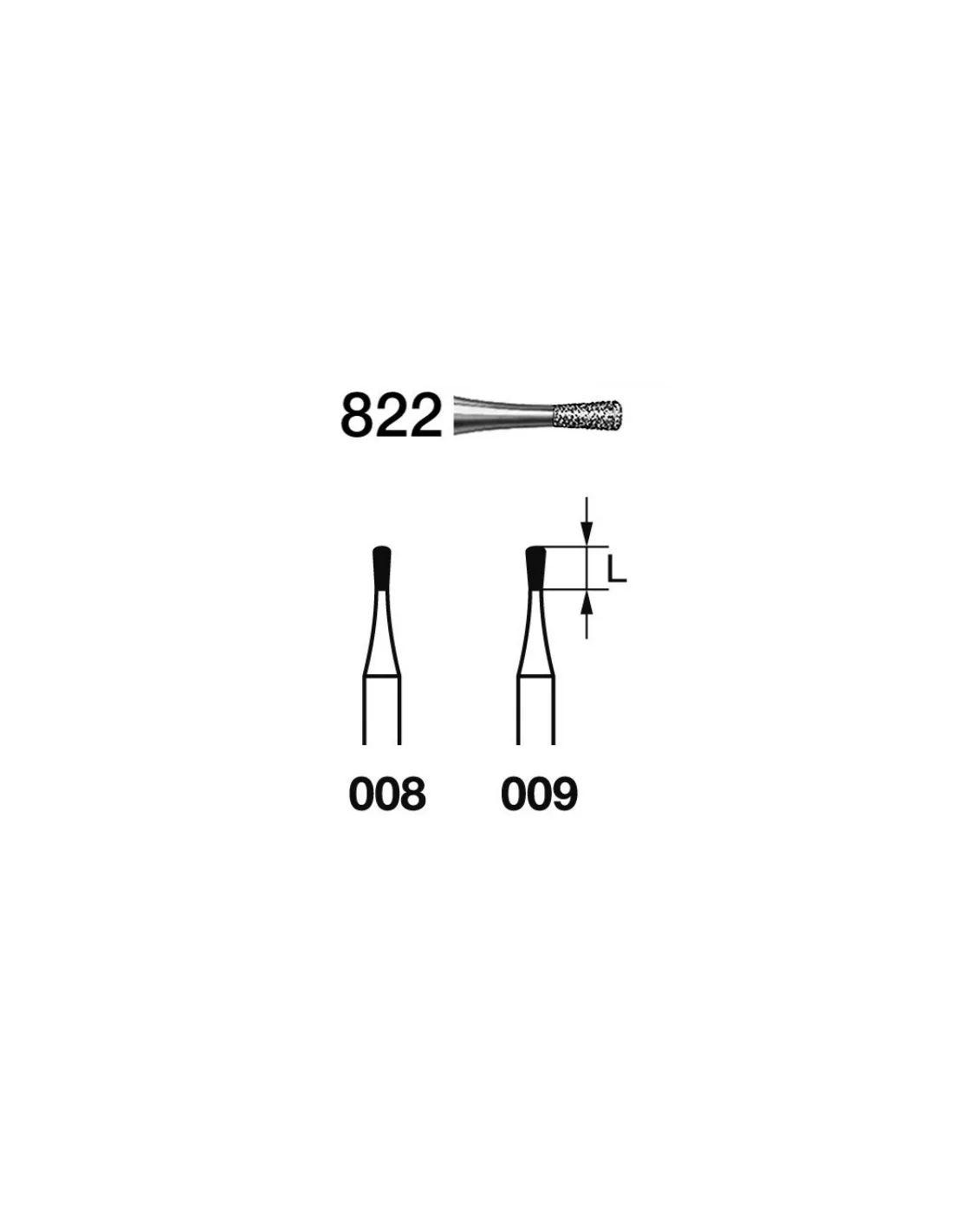 Instrumento dental Komet 822 es una fresa diamante para turbina indicada para la preparación de cavidades.