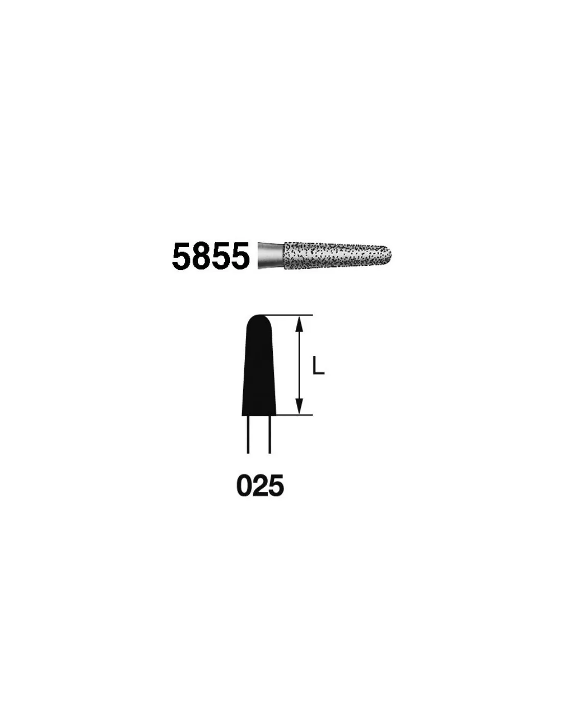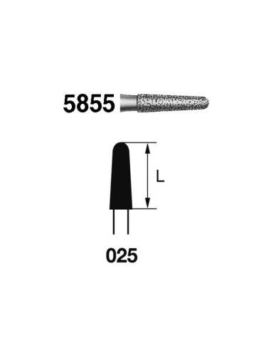 Fresa dental Komet 5855 es una fresa diamante para clínica con forma cónica, corto con bisel, redondo.