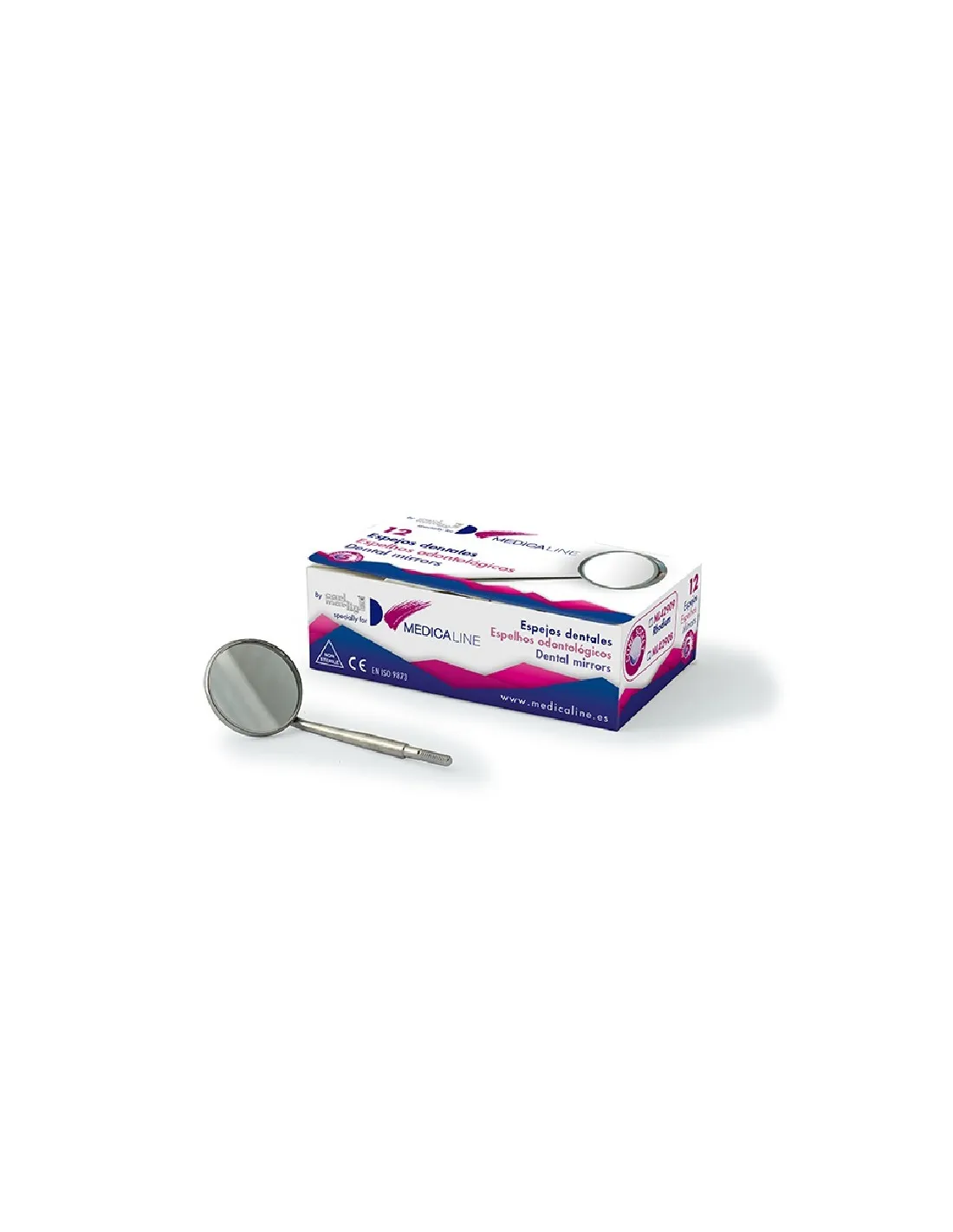 Los espejos odontológicos nº5 Rodio Medicaline se presentan en caja de 12 cabezales de espejos intraorales.