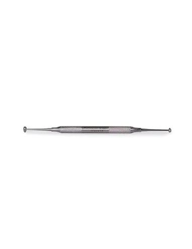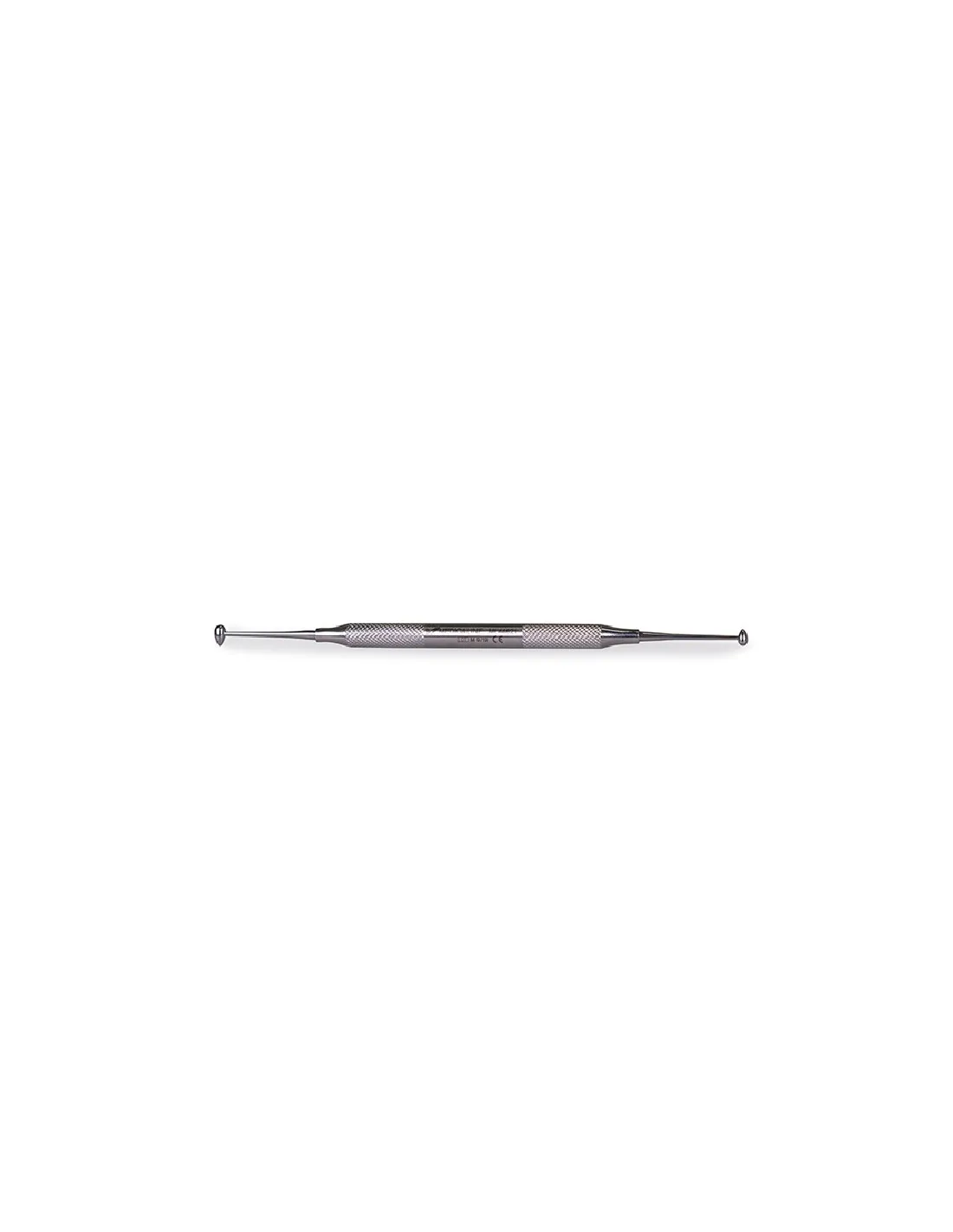 Instrumento dental 1060/11-N para trabajar la amalgama o aplicar cementos en las piezas dentales tiene doble parte activa, ambas con forma de huevo.