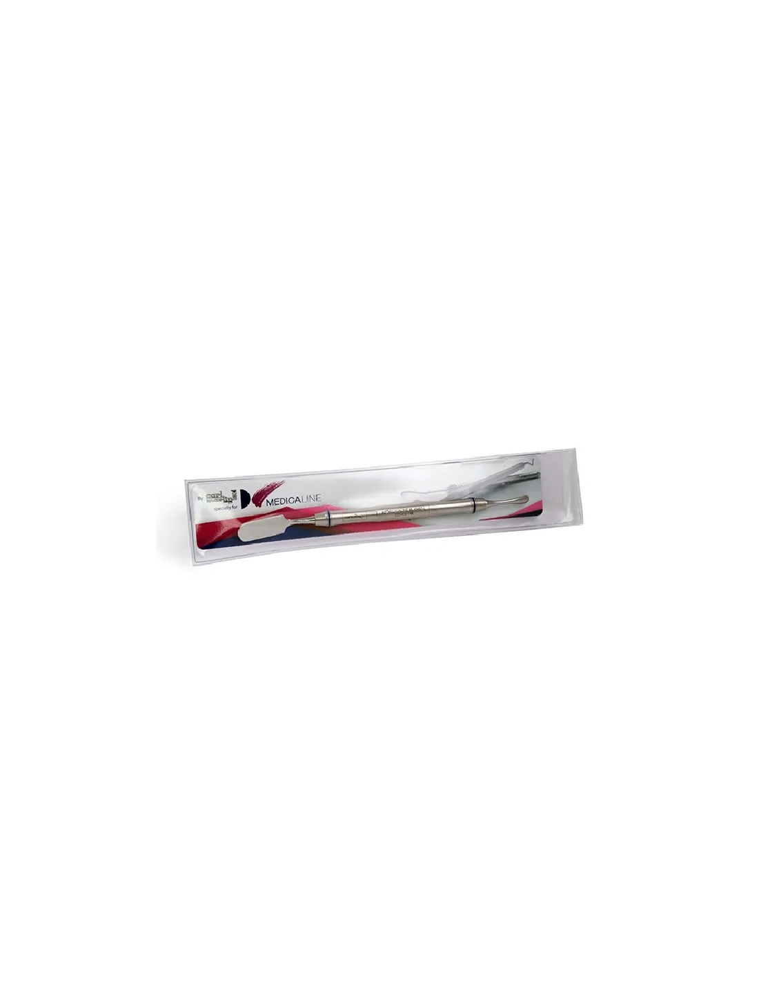 Instrumental dental LS1867/PR3-N posee una longitud de 19,5cm y doble parte activa alargada y aplanada de anchos diferentes: 11,0 mm y 5,0mm.