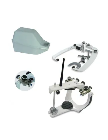 se utiliza junto al articulador dental Arquímedes Protrusal para registrar la posición espacial de la arcada dentaria superior del paciente en relación al cráneo y transferir el registro para el articulador y asi realizar los correspondientes ajustes.