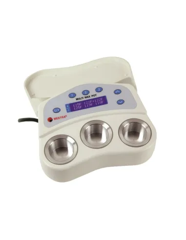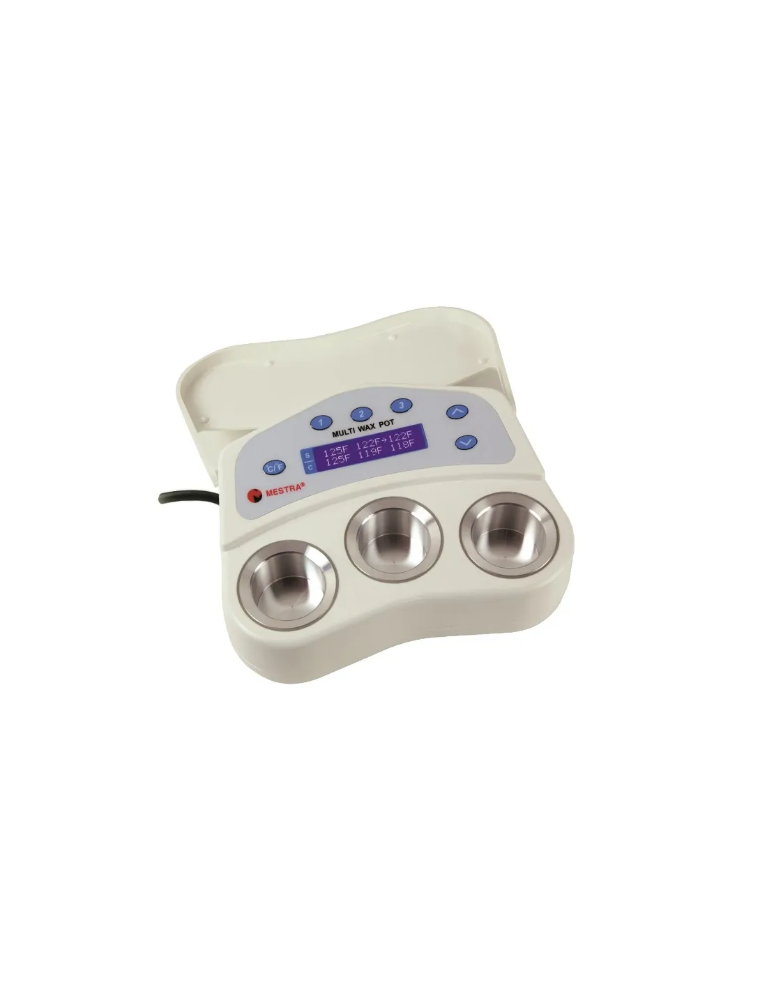Este calentador digital de cera Mestra cuenta con tres recipientes donde se puede calentar tres tipos de cera, y además, también cuenta con regulación de temperaturas independiente en cada cuba.