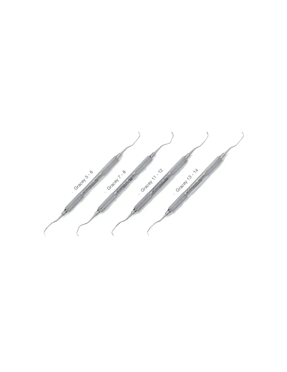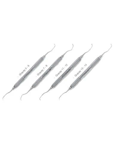 - Gracey 5-6: 972/5-6-N - un poco angulada, para los dientes anteriores y premolares en sus caras libres y laterales.