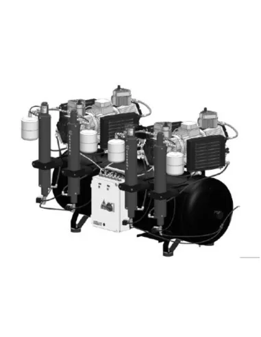 El compresor Cattani AC 1200 con 2 secadores de aire está recomendado para su uso hasta 21 equipos dentales.