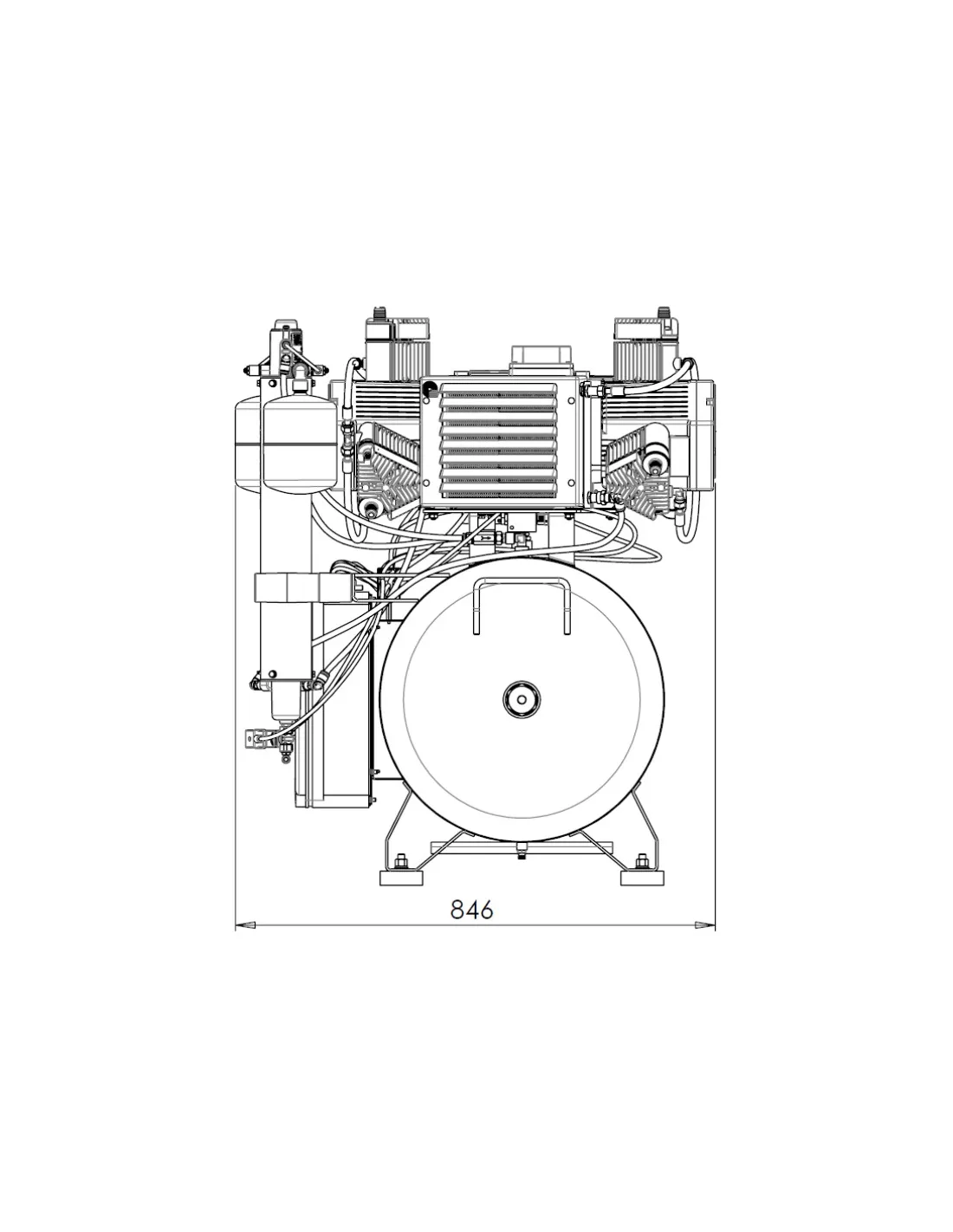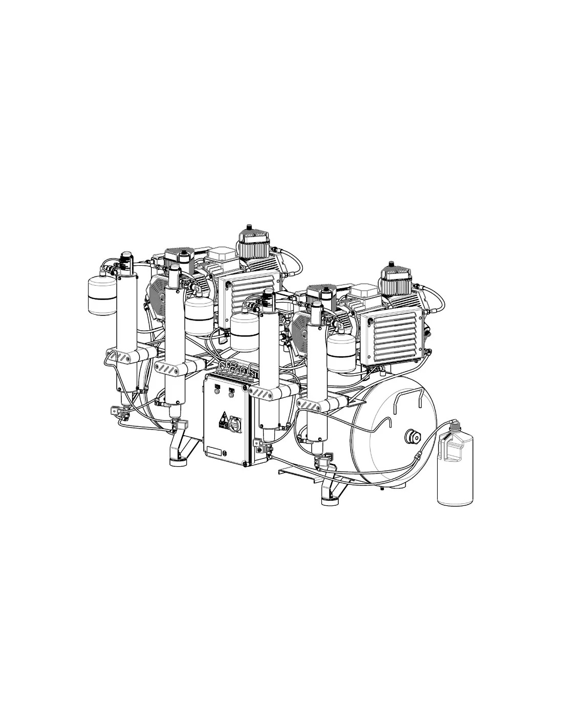 Este compresor de 2 motores trifásicos cuenta con 2 secadores de aire y una serie de filtros, incluyendo uno esterilizante, que garantiza una alta calidad y pureza del aire seco.