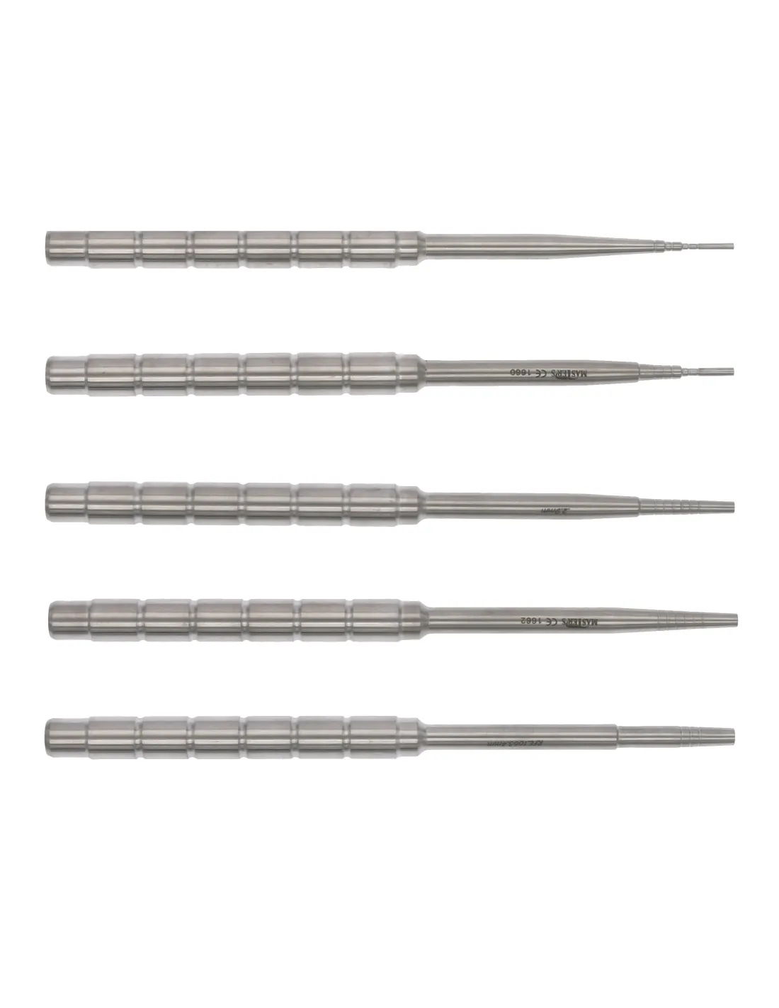 Osteotomo cóncavo recto de Masters con punta de diámetro degradado y muescas de 10 mm para controlar la profundidad.