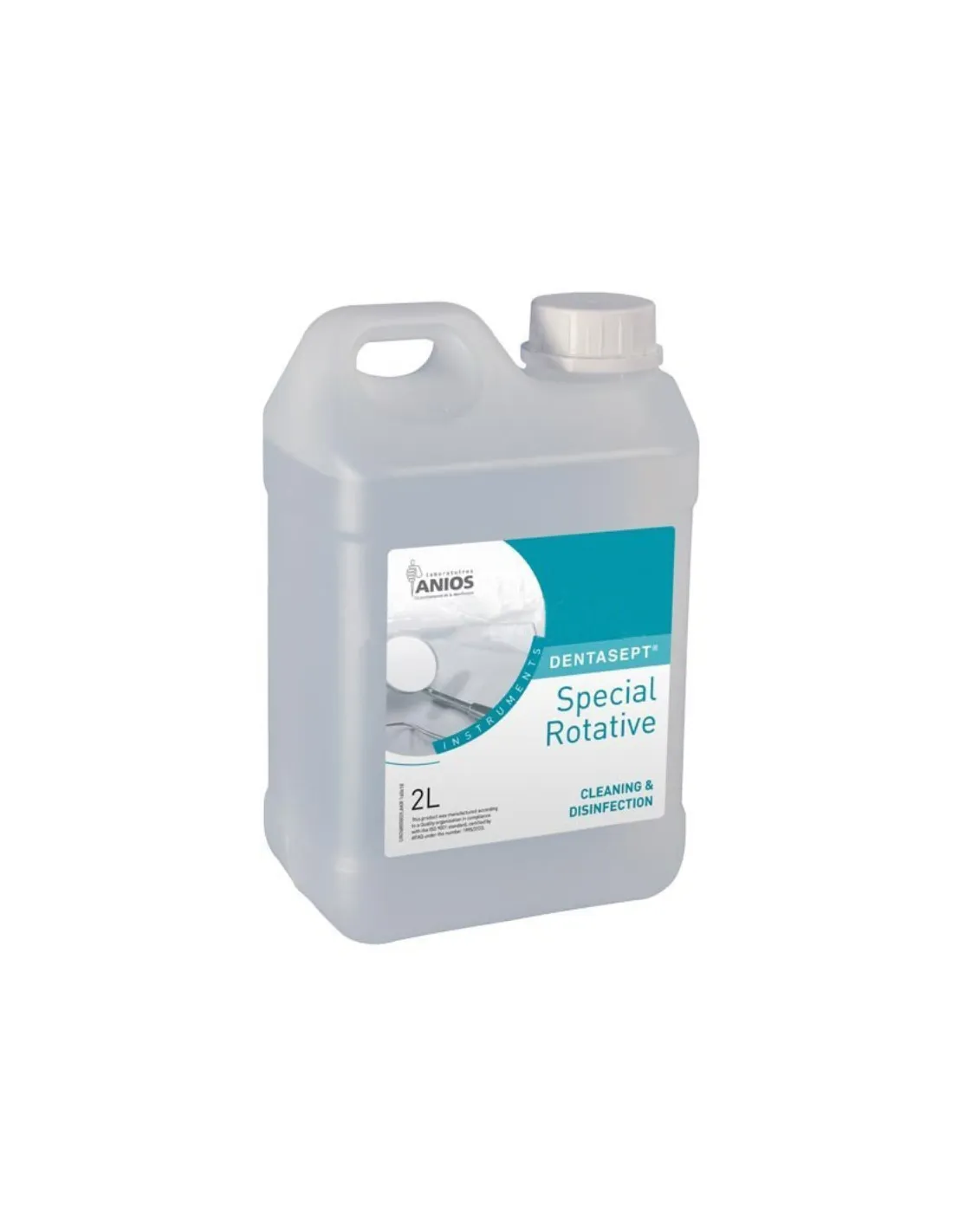 Dentasept Special Rotative de Anios es una solución detergente y desinfectante para el tratamiento de fresas dentales, instrumental rotatorio y para canales, antes de su esterilización.