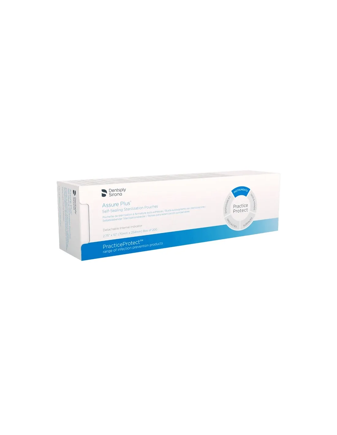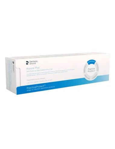 La caja de bolsas autosellantes Assure Plus de Dentsply contiene 200 unidades.