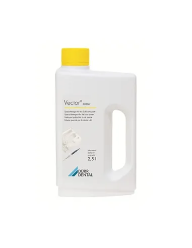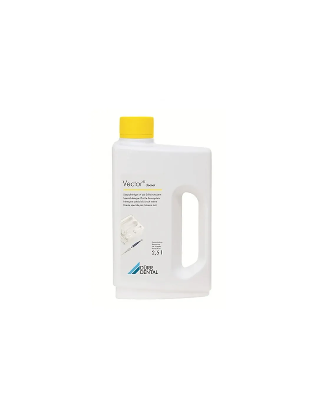 Vector cleaner de Durr Dental es una solución para la desinfección y eliminación de residuos solubles en medios ácidos de los sistemas de mangueras y piezas de mano del Vector Systems.