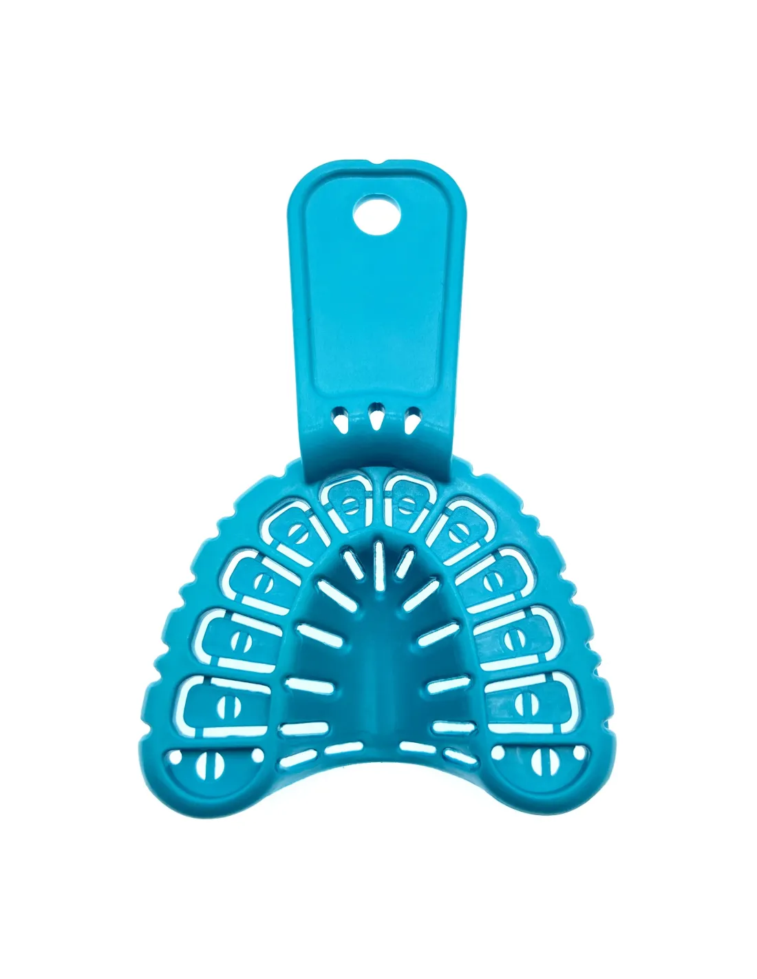 Estas cubetas de impresión perforadas, cuentan con una sección que se puede romper facilmente con los dedos cuando se use para implantes.