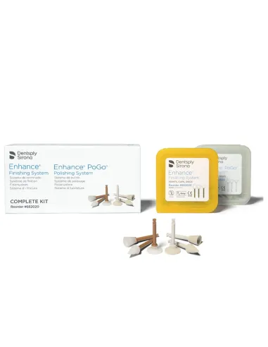 Enhance Finishers de Dentsply es un sistema completo de acabado y pulido sencillo en solo dos pasos. Compuesto por un abrasivo superior incorporado en una resina especial. Indicado para el acabado y pulido de restauraciones hechas en composites, amalgamas, ionómeros, compómeros, etc.