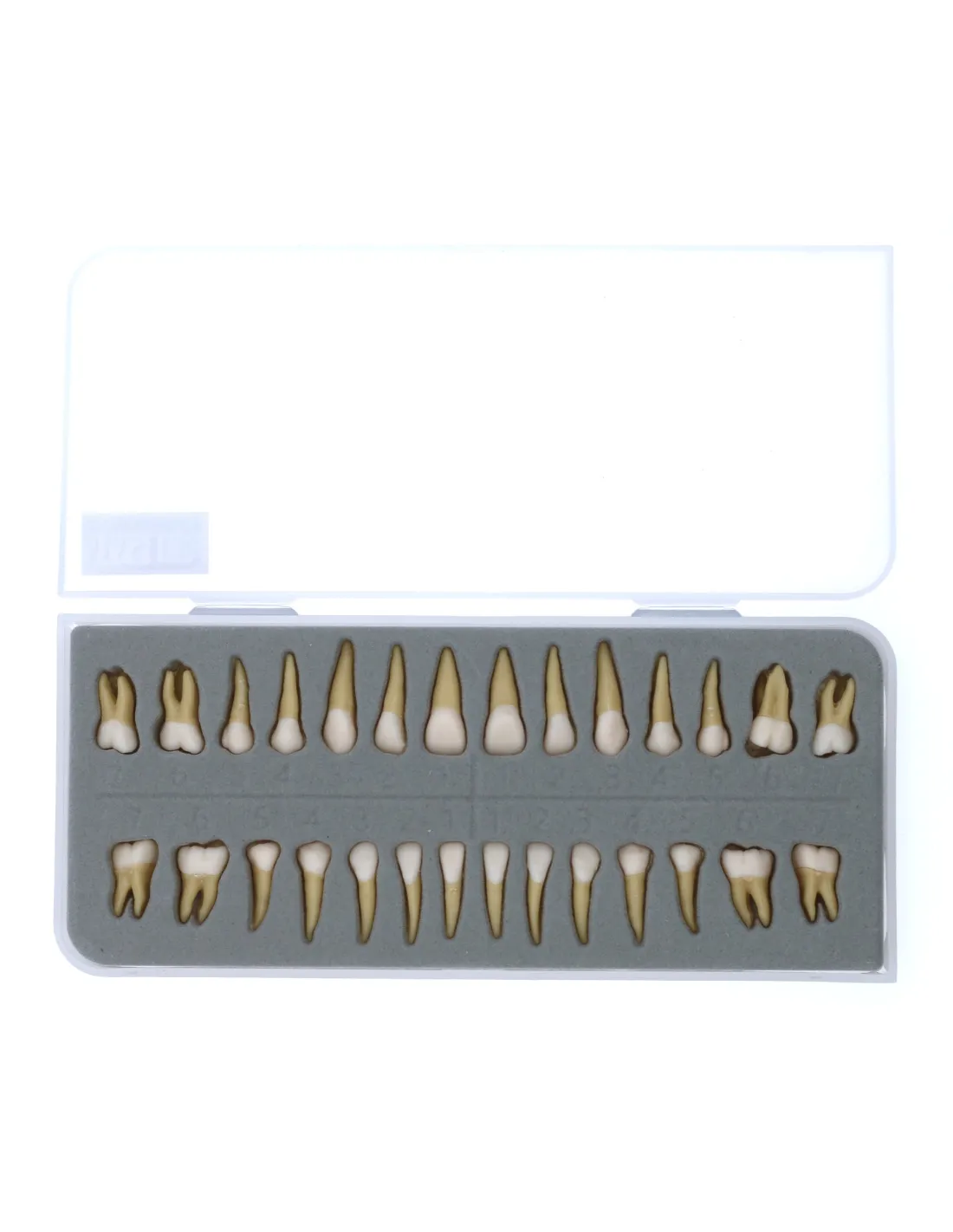 Se trata de 28 dientes con raíces para completar arcada de modelo adulto.