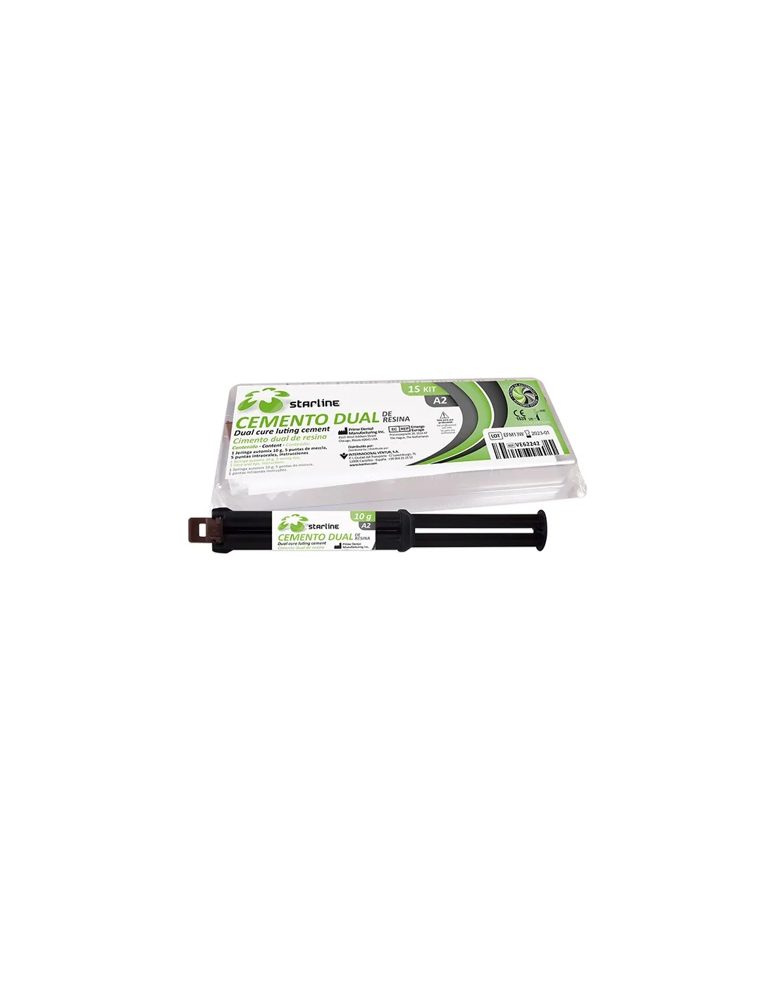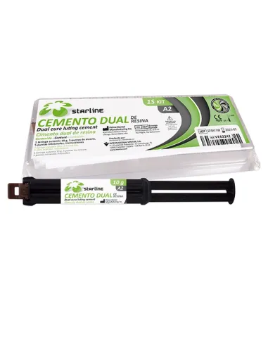 Cemento Dual Luting Kit de Starline es un cemento dual de resina para múltiples usos de cementaciones finales de prótesis sobre implantes, coronas, puentes, inlays, onlays, carillas.