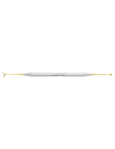 Con doble parte activa: una con forma de huevo y otra, terminada en una horqueta o tenedor de 2 puas, con uno de sus extremos acabo en una bola de Ø1,5 mm.