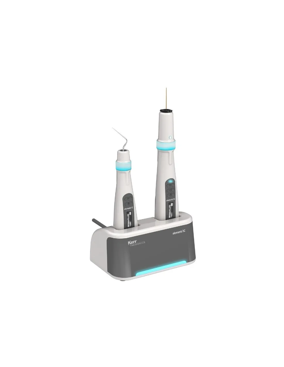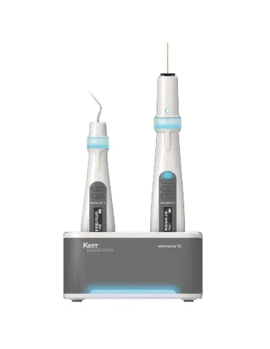 Elements IC de Kerr es un sistema de obturación inalámbrico que combina una fuente de calor para obturación apical (Downpack) y un extrusor para obturación coronal completa (Backfill).