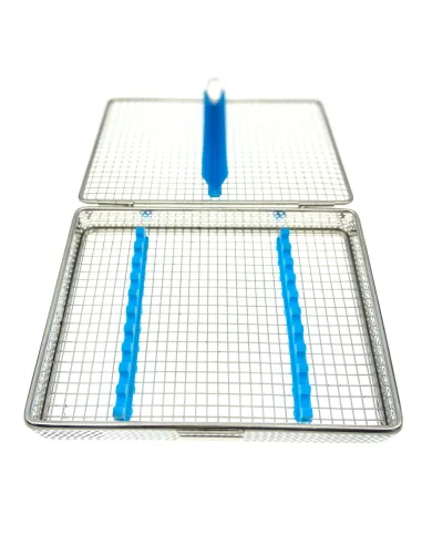 Esta caja de esterilización de alta calidad está indicada para la esterilización de 10 piezas y presenta unas medidas de: 20x14,5x3,5 cm.