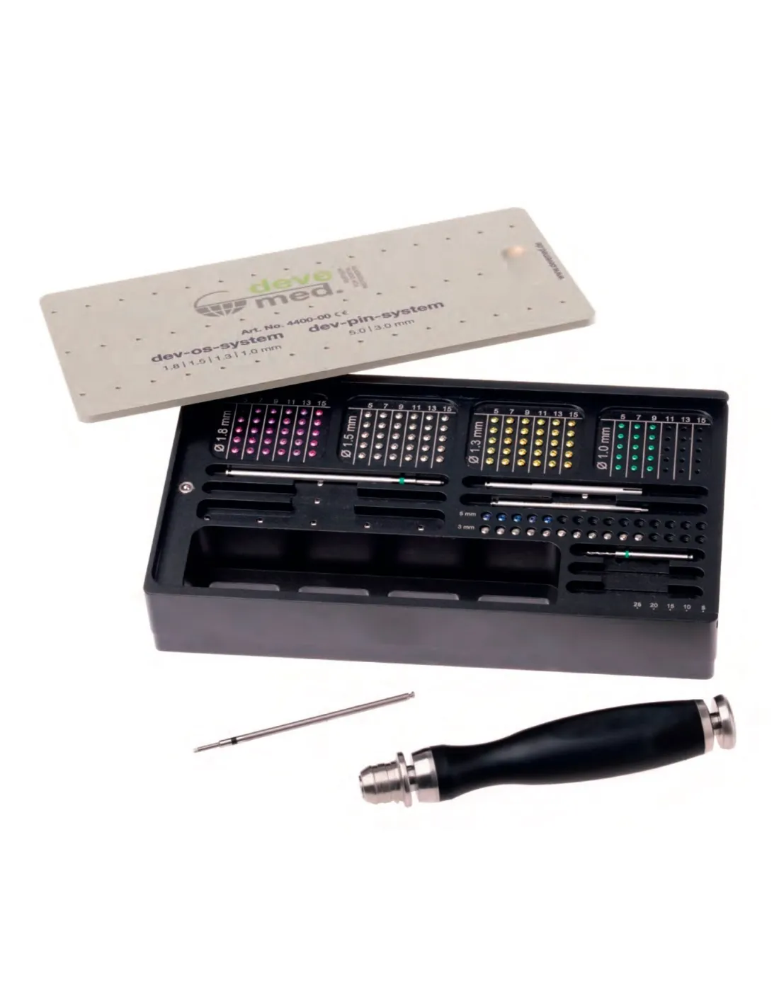 DEV-OS-SYSTEM set de Deve Med es un set completo de tornillos de Osteosíntesis.