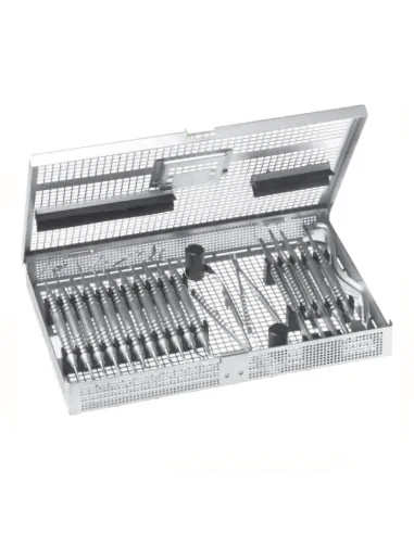 Este set contiene instrumentos con mango RS, redondo y sólido, que ofrece una transmisión de la potencia mejorada y con mayor control y mango SL, ultraligeros. Ambos permitiendo un trabajo táctil sin dañar las estructuras adyacentes.