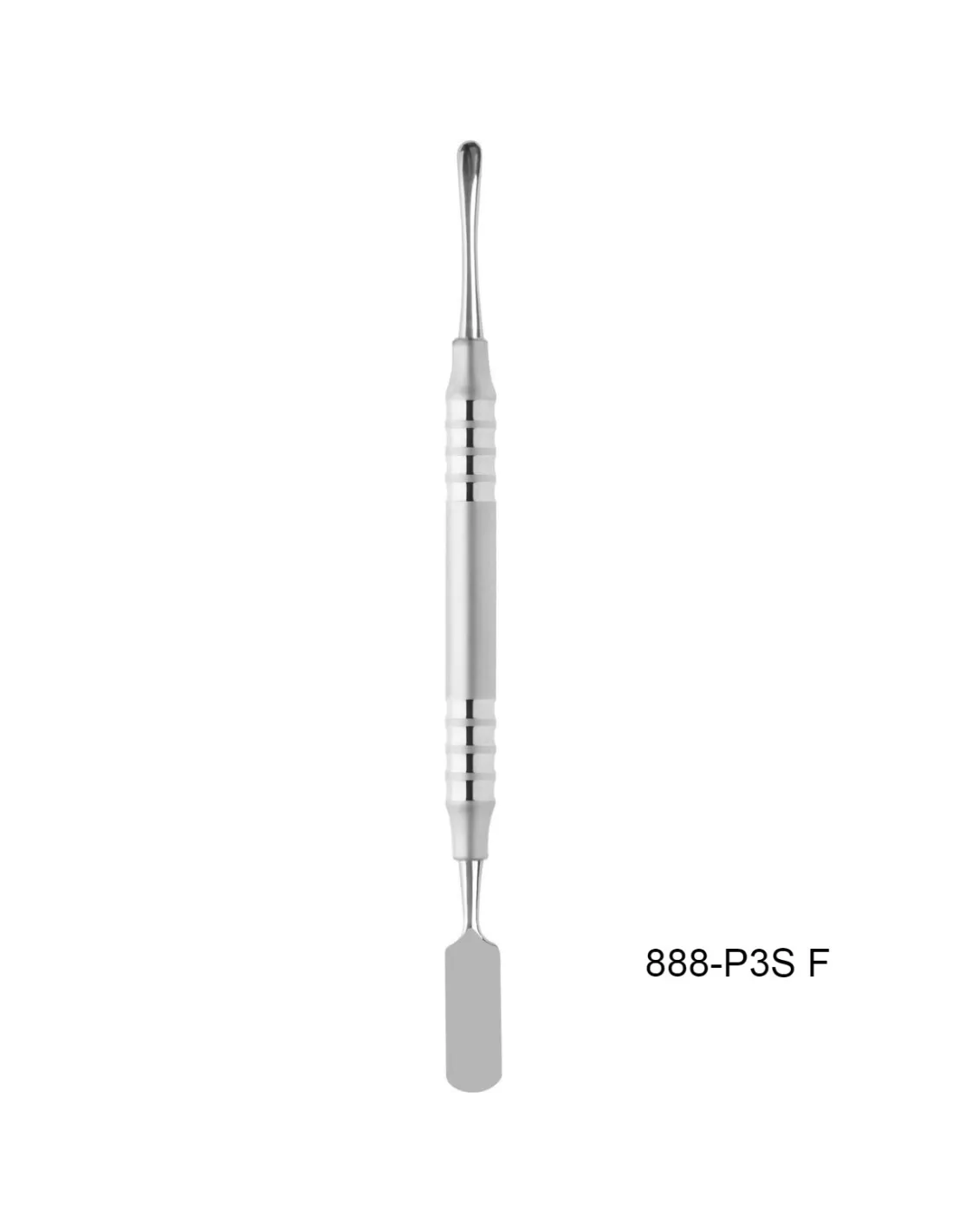 - 888-80 F - Micro elevador perióstico “Iglhaut” 17,1 cm. Mango SL. Doble parte activa, su parte activa con forma de lanza permite el desprendimiento de la papila así como de la cresta marginal de la encía. La aleta mucoperiostal se puede desprender suavemente con su parte activa con forma de pala.